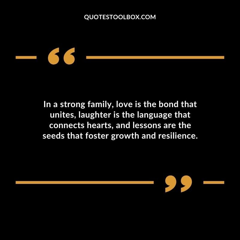 In a strong family, love is the bond that unites, laughter is the language that connects hearts, and lessons are the seeds that foster growth and resilience.